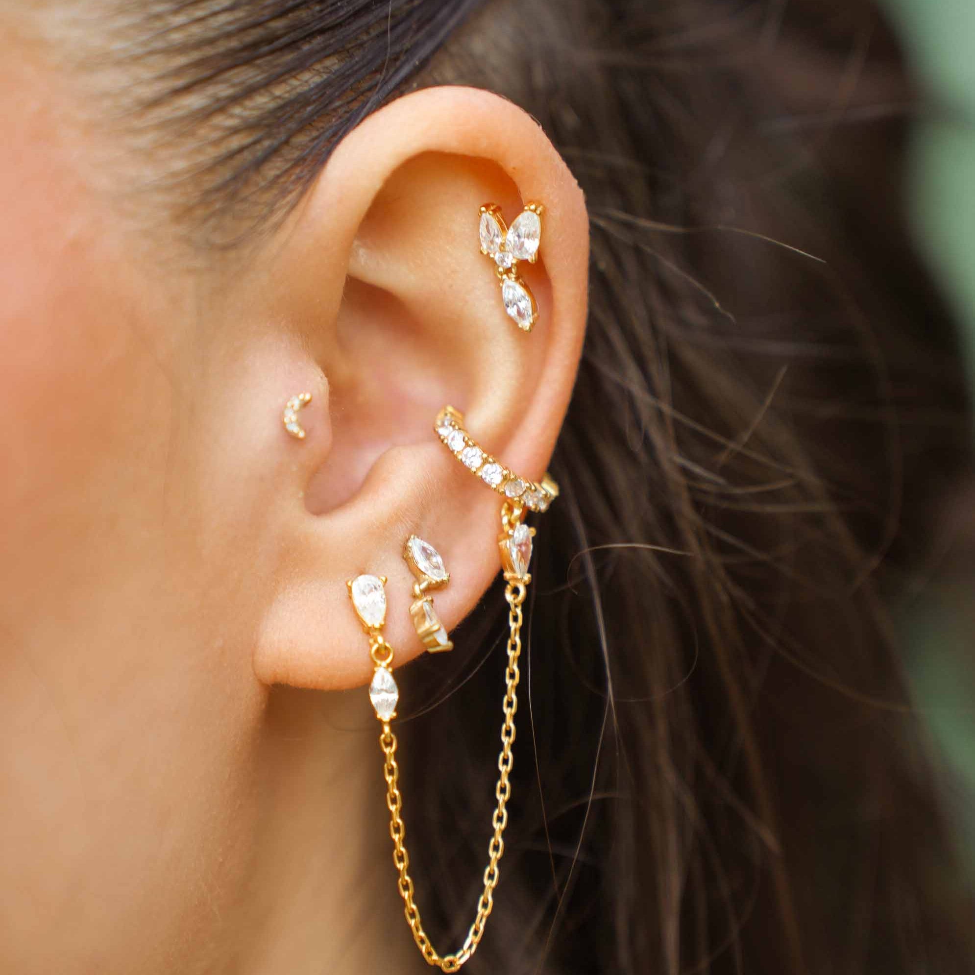 Der Lúmina Earcuff ist Teil der strahlenden Lúmina Familie und überzeugt durch sein Design: Die zarte Verbindung mit der filigraner Kette verleiht ihm eine außergewöhnliche Note. Dadurch wird es Statement-Piece, das sofort ins Auge fällt.